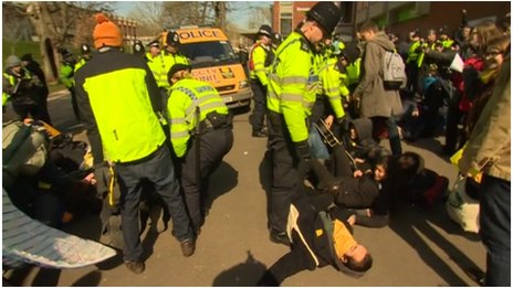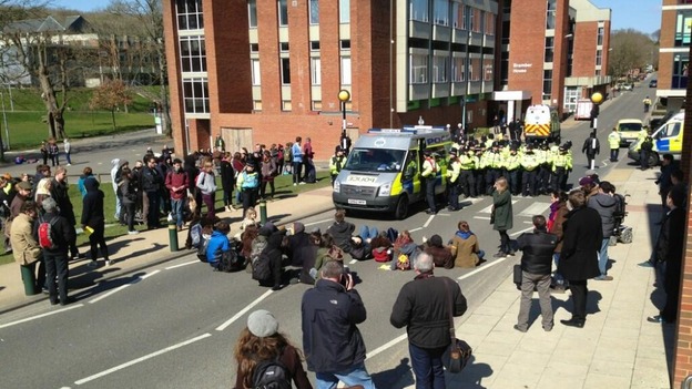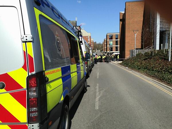 There were over 12 police vans in attendance to evict sussex students from their occupation.