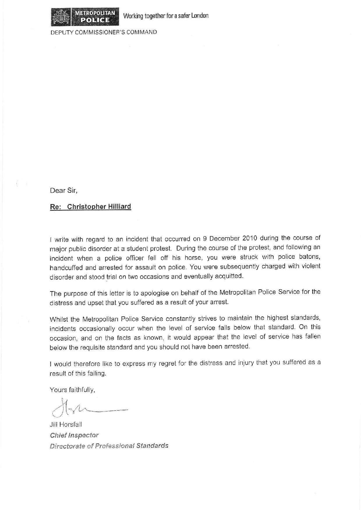 Another student protester Alfie Meadows was cleared of violent disorder at the same protest over two years ago, yet still awaits the release of the IPCC report into a brain injury that required emergency surgery.