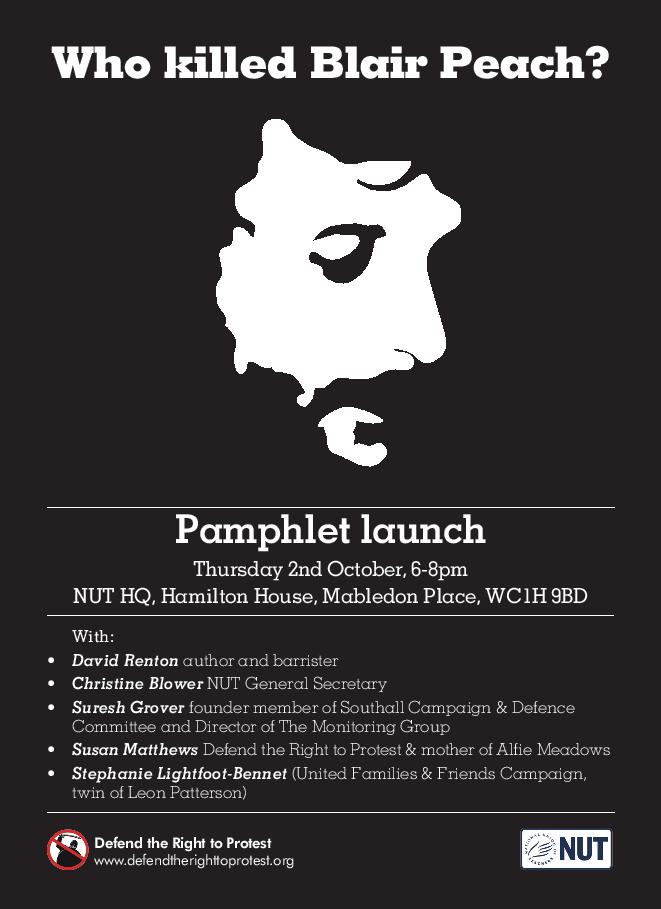 “The death of Blair Peach is a lasting injustice. But it is also a pressing issue because there is no evidence that the policing mistakes that led to the death of Blair Peach have been consigned to the past.” SUSAN MATTHEWS DtRtP and mother of Alfie Meadows